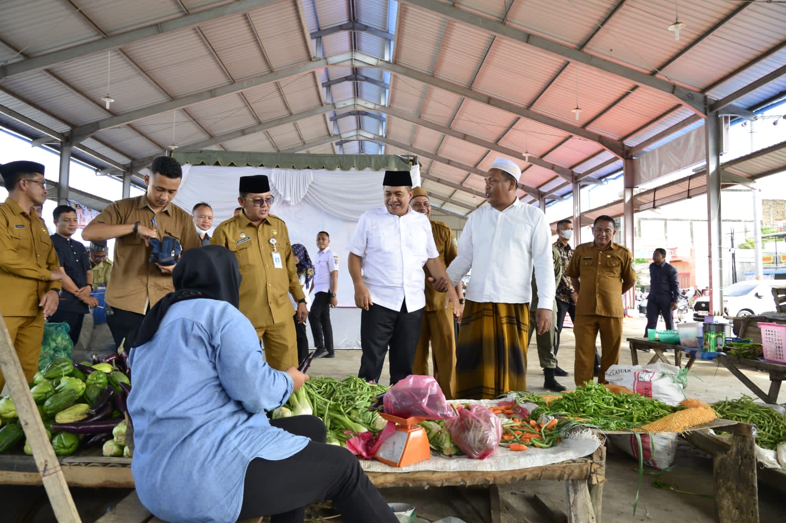 Selanjutnya Bupati Zahir berpindah ke pedagang lain yaitu Mariani. Di sini Bupati Zahir memborong 20 kg tomat dan 14 kg cabai merah.