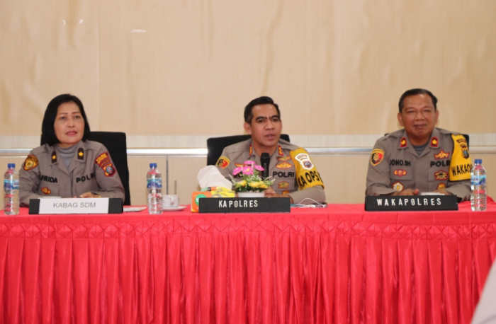 BATU BARA – Kapolres Batu Bara AKBP Jose DC. Fernandes, SIK,, mengucapkan terimakasih kepada para siswa diktukba Polri TA. 2022 yang melaksanakan latihan kerja di wilayah hukum polres Batu Bara bertempat di Aula Bhayangkari Polres Batu Bara, Rabu (30/11/2022).