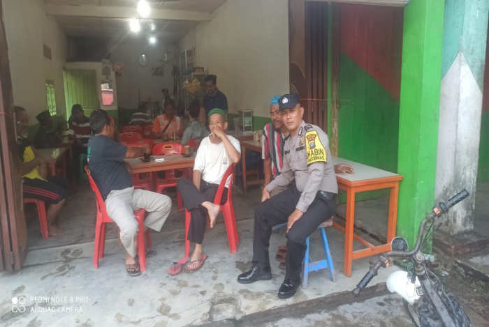 BATU BARA | TEMPO TIMUR – Bhabinkamtibmas Polsek Labuhan Ruku Polres Batu Bara sambangi kedai kopi yang ada di pajak Onan Dusun III Desa Ujung Kubu Kecamatan Nibung Hangus Kabupaten Batu Bara, Sabtu (7/10/2023).