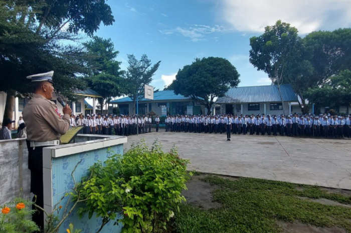 BATU BARA | TEMPO TIMUR – Dalam rangka kegiatan Dikmas Sosialisasi dan Himbauan tertib berlalu lintas, Satlantas Polres Batu Bara melaksanakan Police Go To School di SMA Negeri 1 Lima Puluh Kabupaten Batu Bara, Senin (30/10).