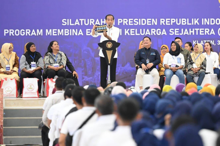 Jawa Tengah | Tempo Timur – Presiden Joko Widodo Silaturahmi dengan para nasabah program Membina Ekonomi Keluarga Sejahtera (Mekaar) binaan Permodalan Nasional Madani (PNM) di Graha Bung Karno, Klaten, Jawa Tengah, 31 Januari 2024. Optimistis, karena setidaknya separuh usaha dari total 15,2 juta nasabah dapat “naik kelas”.