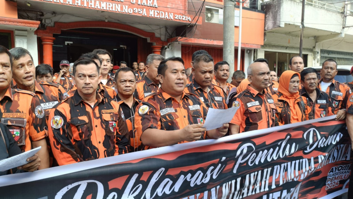 Deklarasi tersebut digelar dipinggir jalan depan kantor MPW Pemuda Pancasila Sumut, Jalan M.H. Thamrin. No. 95A Medan, Kelurahan Sei Rengas 2, Kecamatan Medan Area, Kota Medan, Kamis (08/02/2024) sore.