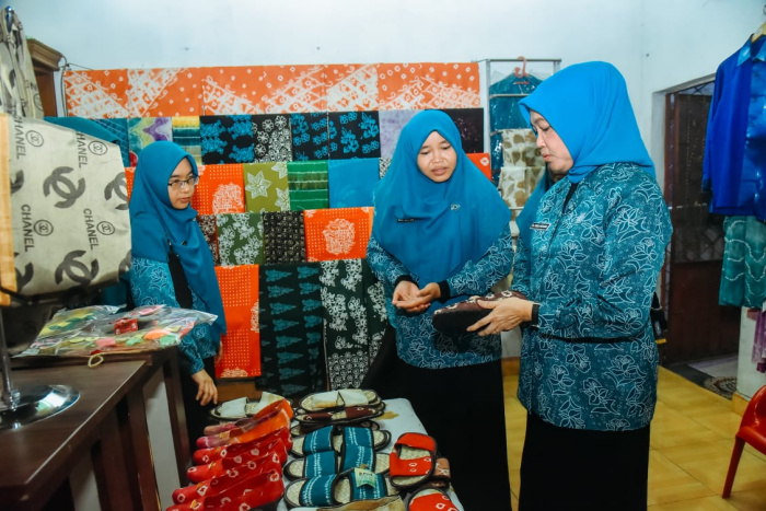 Beranjak dari UMKM pembuat Pismel (Pisang Caramel). Ny. Sumela beserta rombongan berkunjung ke lokasi pembuatan berbagai jenis kain batik di Desa Binjai Baru.