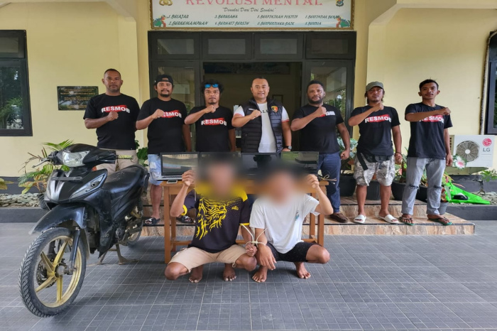 Penangkapan tersebut, petugas juga menyita sebuah sepeda motor yang digunakan kedua terduga pelaku saat beraksi, empat unit laptop berbagai merk, enam unit handphone berbagai merk, satu kalung emas dan dua cincin emas.