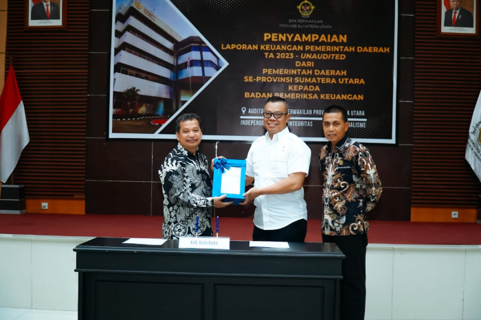 Medan | Tempo Timur – Pemerintah Kabupaten Batu Bara kembali memberikan Laporan Keuangan Pemerintah Daerah (LKPD) unaudited untuk tahun anggaran 2023 kepada Badan Pemeriksa Keuangan (BPK) RI Perwakilan Sumut, di Kantor BPK RI Perwakilan Sumut, Jl. Imam Bonjol, Medan, Jumat (22/03/2024).