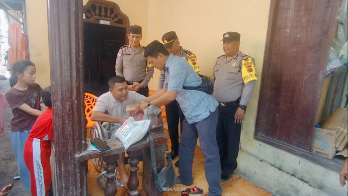 Batu Bara | Tempo Timur – Kapolsek Labuhan Polres Batu Bara melalui tim Jumat berkah Ramadhan memberikan bantuan kursi roda kepada masyarakat yang mengalami kelumpuhan bertahun.