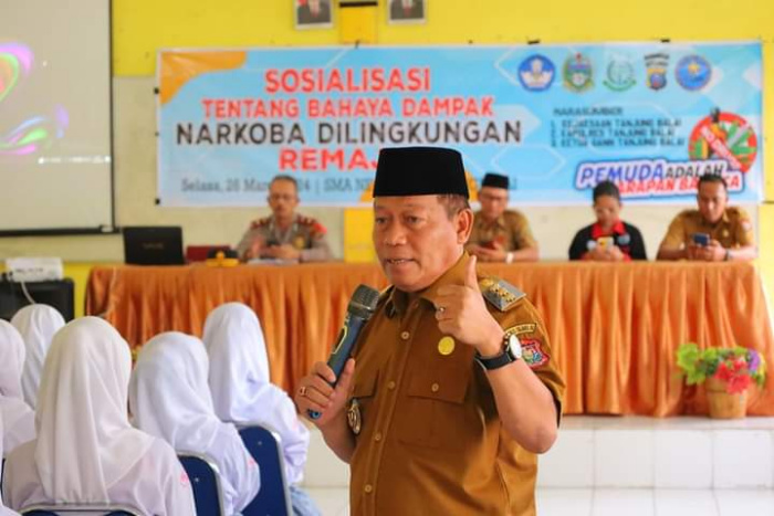 Tanjungbalai | Tempo Timur – Wali Kota Tanjungbalai H Waris Tholib menghadiri acara Sosialisasi Bahaya Dampak Narkoba di Lingkungan Remaja yang diselenggarakan DPC Generasi Anti Narkotika Nasional (GANN) Kota Tanjungbalai yang berlangsung dia SMA Negeri 1 Tanjungbalai, Jalan MT. HARYONO NO.10, Karya, Kec. Tanjung Balai Selatan, Kota Tanjung Balai, Selasa (26/3) pagi.