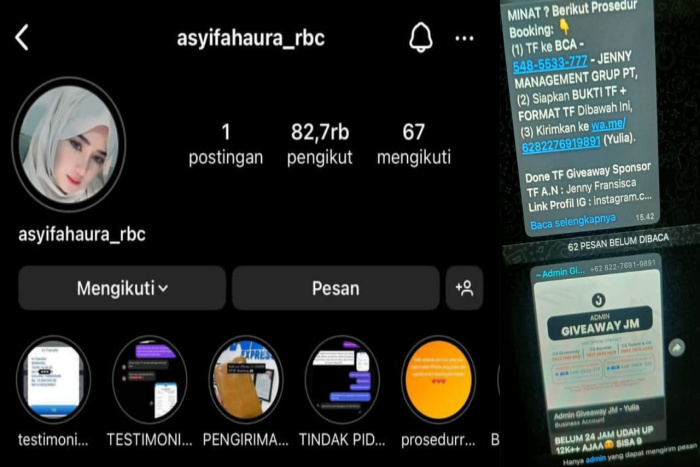 Berbeda dengan para selebriti, komplotan penipu ini berjanji akan memberikan giveaway namun dengan syarat memberikan sejumlah uang administrasi.