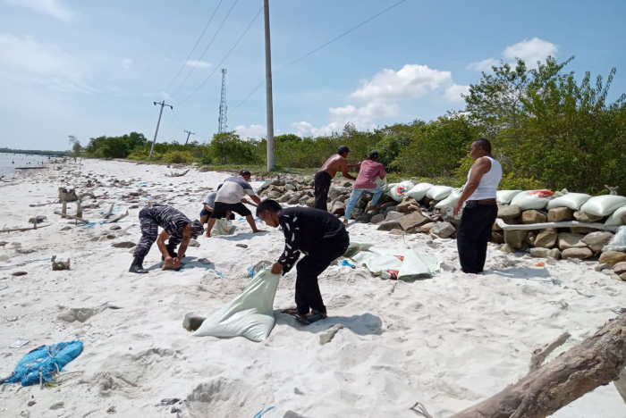 “Saat ini terutama jalan penghubung desa Bandar Rahmat sudah hampir habis terkikis, agar jalan tetap bisa tetap dilalui akibat abrasi yang semakin hari menyusutkan badan jalan di pantai Desa Bandar Rahmat, maka dilakukan gotong royong ini sebagai upaya penanganannya,” kata Kades.