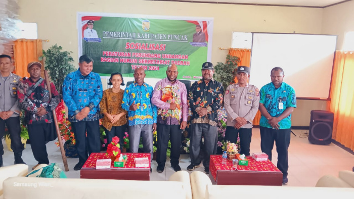 Sosialisasi yang digelar Kabag Hukum Puncak dan dihadiri, staf ahli Bupati Puncak. Dan dihadiri juga karo Hukum Provinsi Papua Tengah Biro Hukum Yulius Manurung, SH, MH dan ibu elni yusuf lallo, SH kabag Hukum. serta tamu undangan kepala dinas badan kabupaten Puncak.