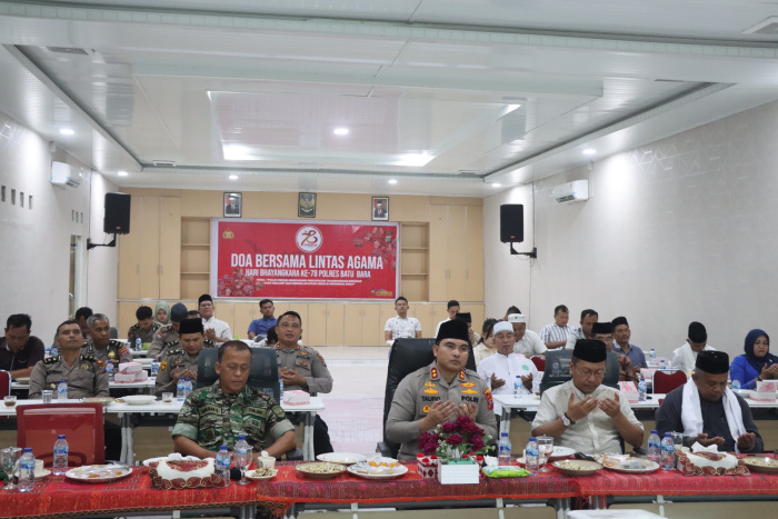 Batu Bara – Dalam rangka memperingati Hari Bhayangkara Ke-78 tahun 2024, Polres Batu Bara mengikuti Doa Bersama Lintas Agama yang dilaksanakan di Aula Sarja Arya Racana Polres Batu Bara Secara Virtual Serentak yang dipimpin oleh Bapak Kapolri Jenderal Polisi Drs. Listyo Sigit Prabowo, M.Si. Kamis (28/06/2024).