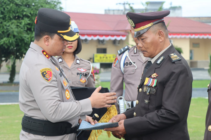 Batu Bara – Polres Batu Bara dalam rangka pelepasan anggota Polri yang purna bakti atau pensiun, Polres Batu Bara menggelar upacara pelepasan yang dipimpin langsung Kapolres Batu Bara AKBP Taufiq Hidayat Thayeb, SH.,SIK, Sabtu (06/07/24)