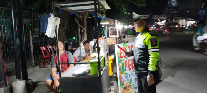 Tanjung Balai – Operasi Patuh Toba (OPS) 2024, Personel Sat Lantas Polres Tanjungbalai Patroli humanis kepada pedagang yang berjualan di badan Jalan, Selasa (16/7).