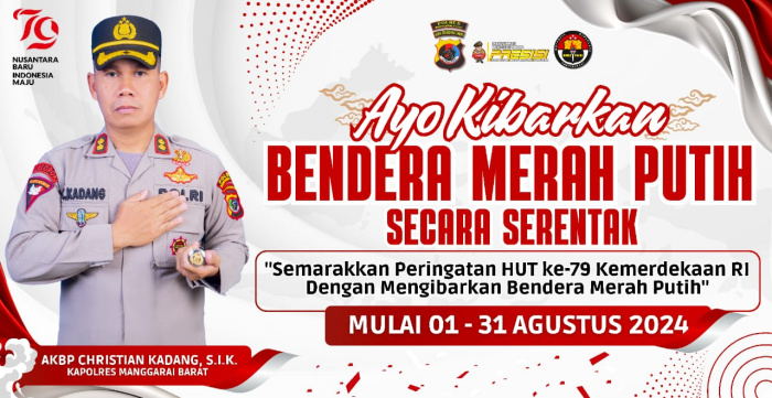 LABUAN BAJO – Dalam rangka menyambut hari kemerdekaan Republik Indonesia yang jatuh pada tanggal 17 Agustus mendatang, AKBP Christian Kadang, S.I.K. mengajak seluruh masyarakat untuk mengibarkan Sang Saka Merah Putih.