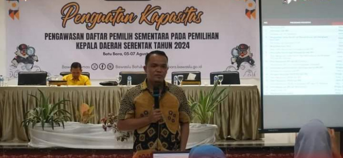 Batu Bara – Komisi Pemilihan Umum (KPU) Kabupaten Batu Bara menjadi Narasumber dalam Kegiatan Penguatan Kapasitas Pengawasan Daftar Pemilih Sementara pada Pemilihan Kepala Daerah Serentak Tahun 2024, Selasa, (06/08).