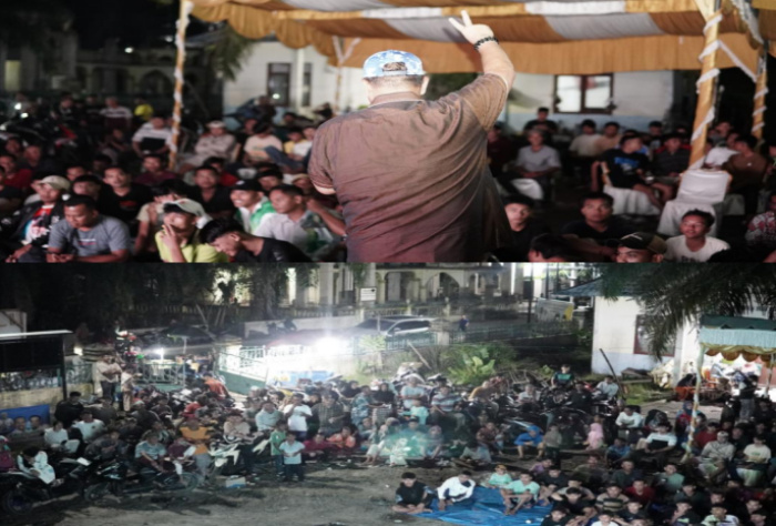 Batu Bara — Ratusan masyarakat Kecamatan Nibung Hangus dan Tanjung Tiram berduyun datang menghadiri acara Nobar bersama pasangan calon bupati dan wakil bupati Batu Bara nomor urut 2 di Istana Niat Lima laras, Selasa (15/10).