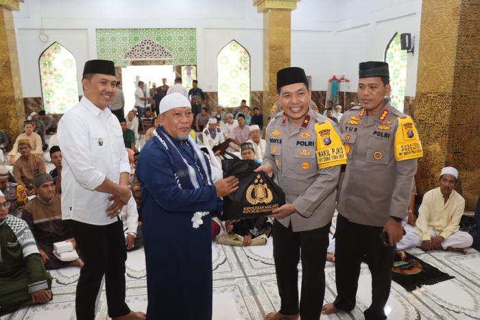 AKBP Taufik Hidayat Thayeb SH, SIK, bersama Waka Polda Brigjen Pol Rony Samtana ,Sik,M,TC,P., PJ. dan Bupati Batu Bara H, Heri Wahyudi Marpaung,S, STP, M, AP, melaksanakan Jum’at Curhat Dan Cooling System, di Mesjid Al Munawaroh jalinsum Sipare pare Kecamatan Air Putih Kabupaten Batu Bara, Jumat (01/11/24).