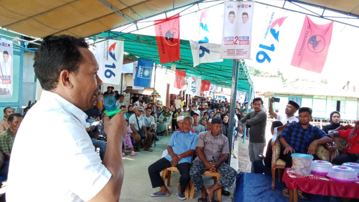 Halsel — Usai Kampanye Terbuka Terbatas di Zona Bacan, Pasangan Calon Bupati dan Wakil Bupati Halmahera Selatan, Rusihan Jafar dan Muhtar Sumaila (Rusihan-Muhtar) melanjutkan kampanye di zona Obi.