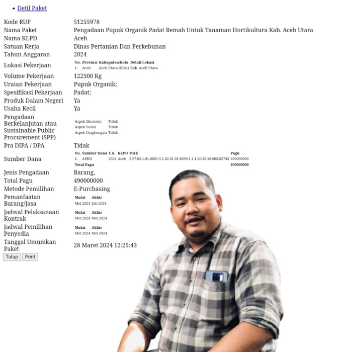 Dikutip dari, Sirup.lkpp.go.id, Anggaran pengadaan tersebut mencapai, Rp. 490.000.000,- (Empat Ratus Sembilan Puluh Juta Rupiah), volume pekerjaan 122,500 kg, satuan Kerja Dinas Pertanian dan Perkebunan, TA 2024.