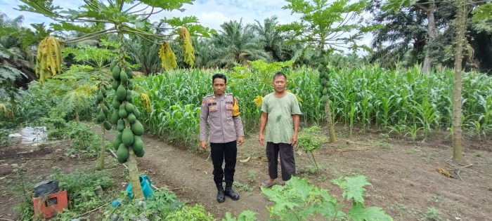 BATU BARA – Dalam rangka mendukung 100 (Seratus) hari kerja Presiden Republik Indonesia, Bhabinkamtibmas Polsek Labuhan Ruku Polres Batu Bara Bripka Kasno Suriadi, melaksanakan pengecekan dan Bimbingan Penyuluhan (Binluh) Ketahanan pangan (Ketapang) nasional. Giat dilaksanakan dengan menyambangi Bapak Aten yang sedang mengerjakan lahan seluas 8 Rante dengan tanaman Jagung, di Dusun II Desa Karang Baru, Kecamatan Datuk Tanah Datar, Batu Bara, Sumatera Utara, Selasa (28/1) Pukul.11.30 Wib.