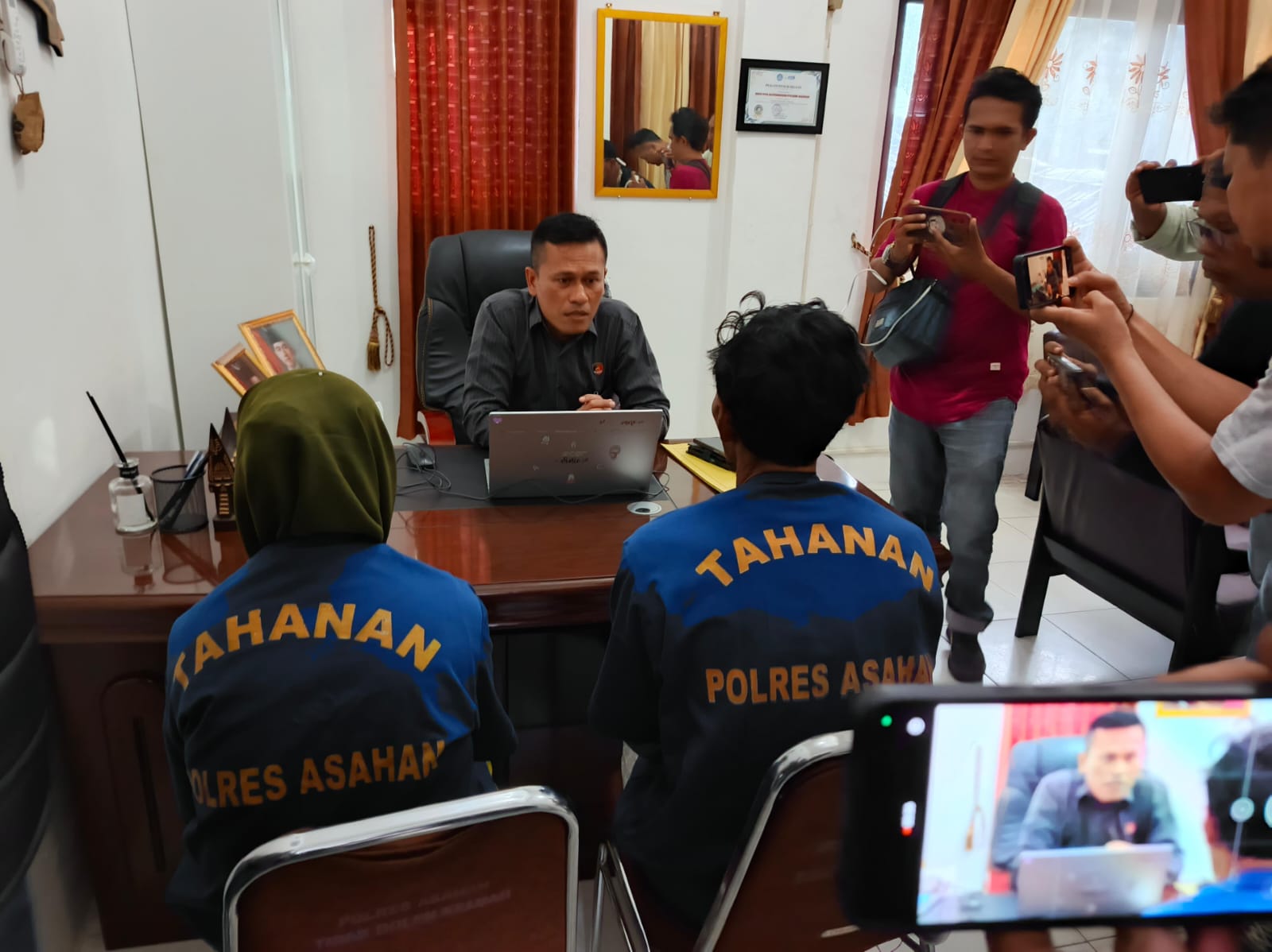 Saat Konferensi Pers berlangsung, Selasa (25/02). Kapolres Asahan, AKBP Afdhal Junaidi menjelaskan bahwa perbuatan pelaku dilakukan sejak korban masih berusia 10 tahun hingga saat ini.