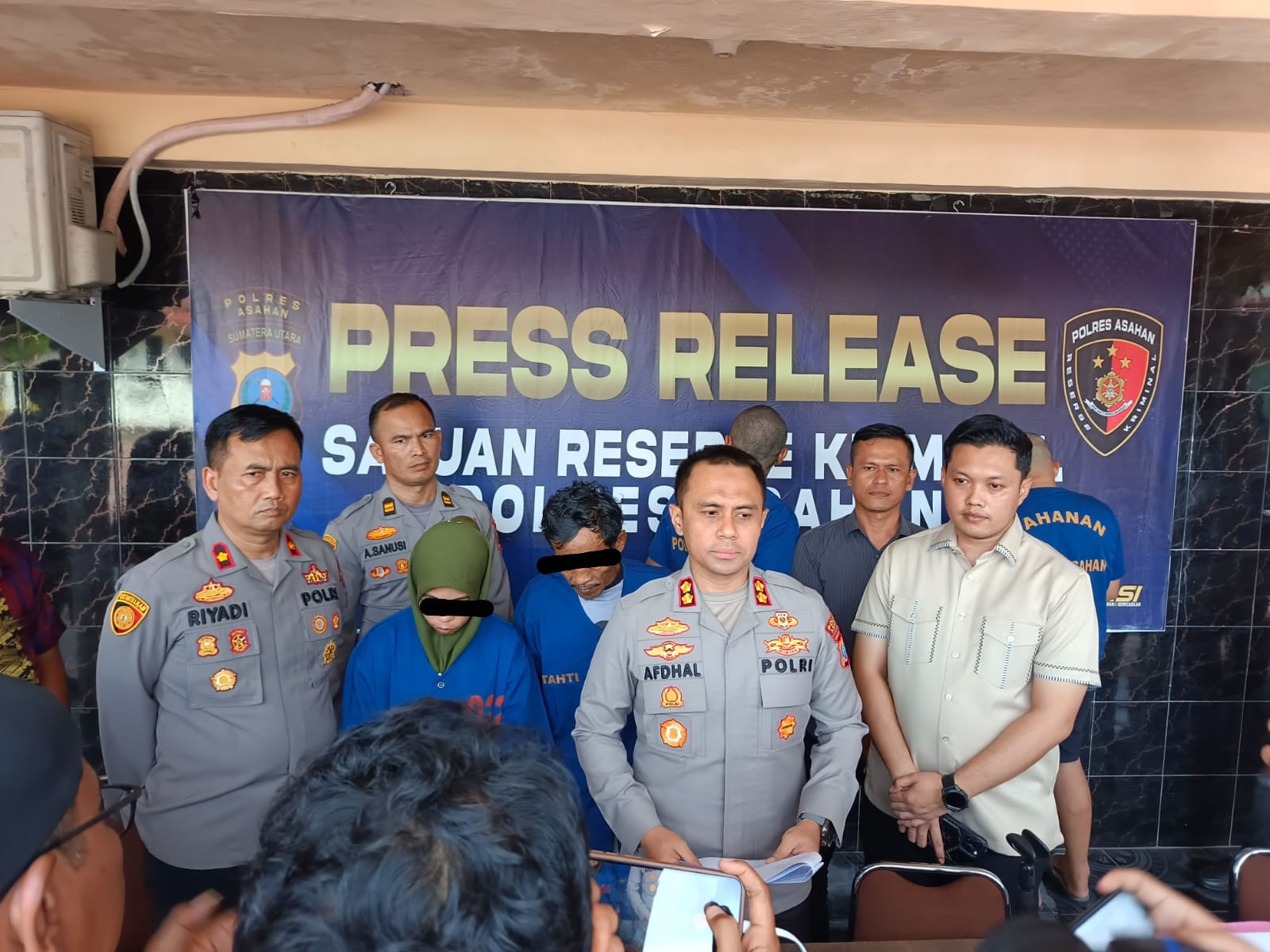 “Kami ada mengamankan dua orang tersangka dalam persetubuhan terhadap anak di bawah umur. Tersangka adalah ayah tiri dan ibu kandung korban,” ujar Kapolres Asahan, AKBP Afdhal Junaidi, sekira pukul 16:30 WIB.