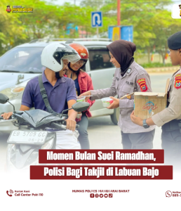 Dalam persaudaraan dan penuh kehangatan, pihak kepolisian turun langsung ke jalan untuk menyapa dan memberikan paket takjil kepada masyarakat Labuan Bajo.