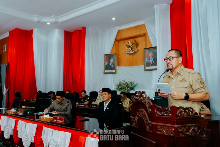 Batu Bara — Bupati Batu Bara H. Baharuddin Siagian, SH, M. Si menyampaikan Laporan Keterangan Pertanggungjawaban (LKPJ) Bupati Batu Bara Tahun Anggaran 2024 dan Nota Ranperda tentang Pemberian Insentif dan Kemudahan Investasi pada Rapat Paripurna DPRD, Lima Puluh, Senin (24/03/2025).