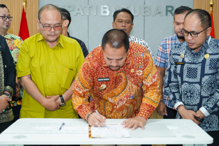 Batu Bara — Guna memastikan pelayanan kesehatan yang terbaik bagi masyarakat Batu Bara Bupati Batu Bara Bapak H. Baharuddin Siagian, SH, M.Si bersama Wakil Bupati Batu Bara Bapak Syafrizal, SE, M.AP menyambut dengan hangat 23 dokter spesialis yang bertugas di RSUD H. OK. Arya Zulkarnain untuk melakukan Penandatanganan Pakta Integritas di Ruang Kerja Bupati Kantor Bupati Batu Bara, Kecamatan Lima Puluh, Kamis (08/05/2025).