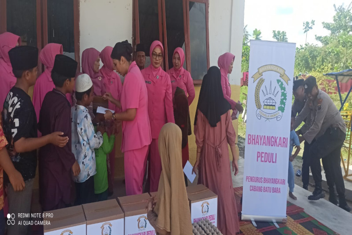 Batu Bara — Mengambil momen Jumat yang penuh Rahmat dan Berkah Bhayangkari Cabang Polres Batu Bara bersama Bhayangkari Polsek Labuhan Ruku memberikan Bansos di dua lokasi berbeda Wilayah Hukum Polres Batu Bara, Jumat 23/5/2025.