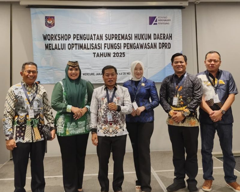 PURUK CAHU, tempotimur.com – Ketua DPRD Murung Raya, Rumiadi, S.E.,S.H., M.H, bersama wakil ketua 1 DPRD, Dina Maulidah, dan anggota DPRD, Bebie, Lita, Sutrisno, Rejikinnor mengikuti workshop penguatan supremasi hukum daerah melalui optimalisasi fungsi pengawasan DPRD selama tiga hari dari tanggal 26 sampai 28 Mei di Ibu Kota Jakarta tepatnya di aula hotel Mercure Hotel Jakarta Cikini.