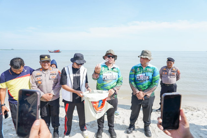 Setelah menggelar upacara kegiatan dilanjutkan dengan melakukan aksi bersih sampah plastik bersama Forkopimda dan masyarakat di sepanjang Pantai Laksamana.