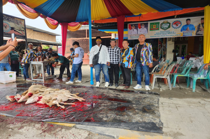 Langkat —  Pemda Langkat dan juga DPD II Pemuda Karya Nasional Kabupaten Langkat serta Kerajaan Metar Bilad Deli menyembelih hewan kurban sebanyak 200 ekor Domba dan dibagikan kepada masyarakat Kabupaten Langkat pada Sabtu (7/6/2025).