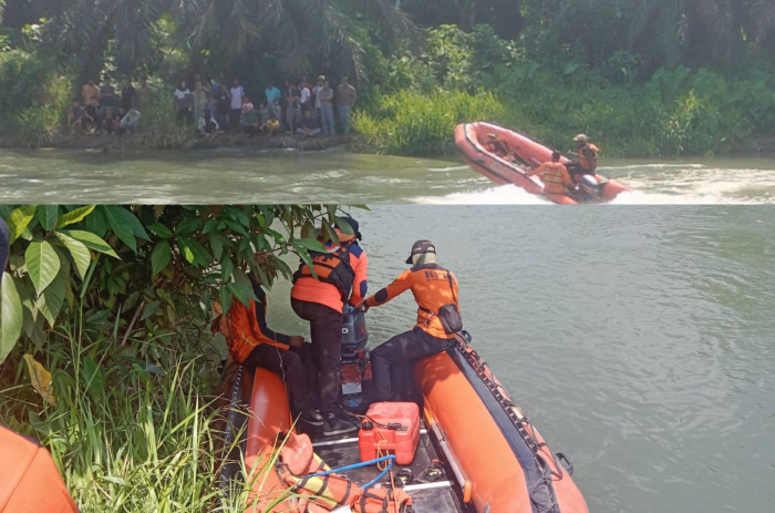 Adapun pencarian terhadap korban dilakukan dengan cara menyisir aliran sungai dengan menggunakan perahu LCR dengan radius sejauh lebih kurang 2 KM arah hilir.ucap fahri menghadiri.