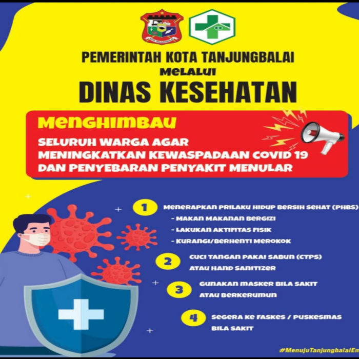 Tanjungbalai — Mewaspadai berkembangnya COVID-19, Pemerintah Kota (Pemko) Tanjungbalai melalui Dinas Kesehatan menyampaikan himbauan yang menjadi perhatian kepada masyarakat khususnya di Kota Tanjungbalai agar mengikuti dan mematuhi himbauan ini untuk kebaikan bersama
