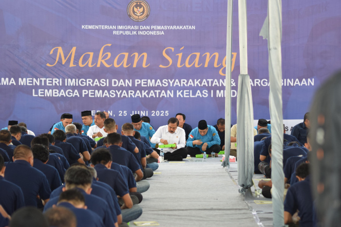 Medan — Lembaga Pemasyarakatan Kelas I Medan menjadi lokasi kegiatan yang berbeda pada Rabu, 25 Juni 2025. Menteri Imigrasi dan Pemasyarakatan Republik Indonesia, Agus Andrianto, melakukan kunjungan kerja dengan pendekatan yang lebih personal. Didampingi jajaran Pimpinan Tinggi Kementerian IMIPAS serta para Kepala Unit Pelaksana Teknis (UPT) Imigrasi dan Pemasyarakatan se-Sumatera Utara, Menteri Agus memilih untuk duduk lesehan dan makan siang bersama para warga binaan.
