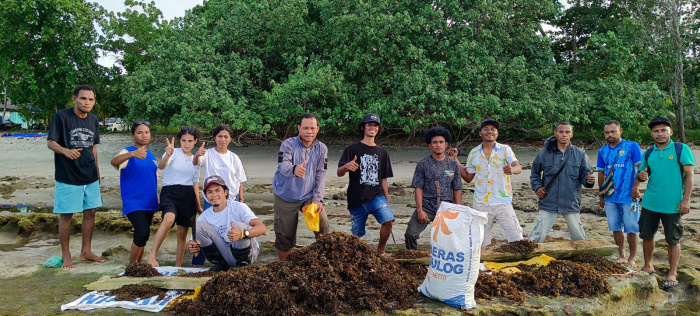Dalam kegiatan ini, mereka berhasil mengidentifikasi 12 jenis rumput laut yang berpotensi menjadi bahan baku pupuk organik ramah lingkungan.