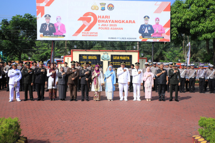 Upacara HUT Bayangkara ini di pimpin oleh kapolres Asahan AKBP Afdal junaidi, yang bertindak sebagai inspektur upacara, dan berlangsung dengan suasana hikmat dan tertib.