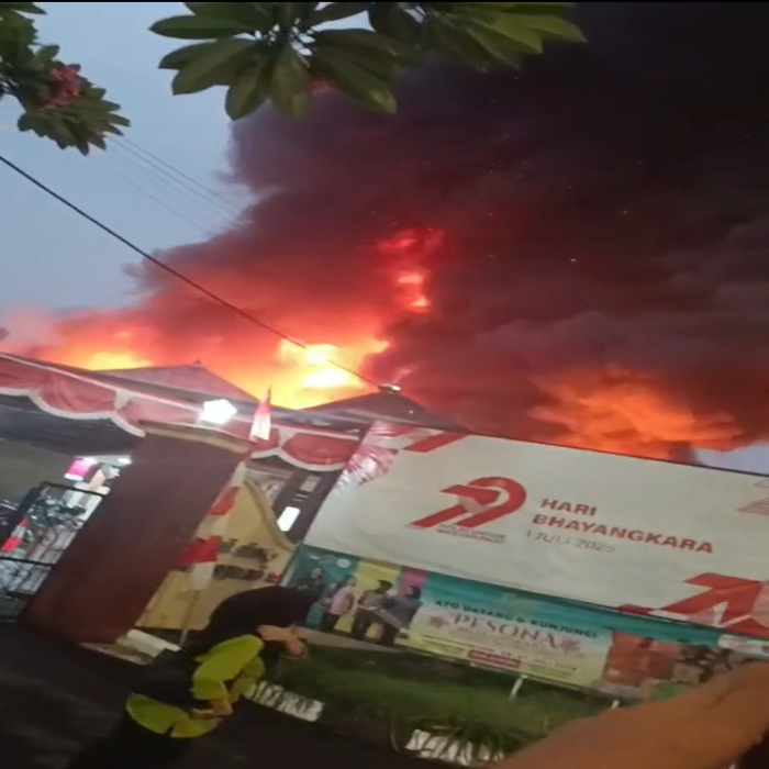 Jakarta — Kebakaran hebat terjadi di kawasan Taman Puring, Jakarta Selatan, tepatnya di belakang Mapolsek Kebayoran Baru pada Senin petang sekitar pukul 18.00 WIB. Api tampak membesar dengan cepat dan memunculkan kobaran api serta asap hitam pekat yang terlihat dari kejauhan, Senin 28/7/2025.