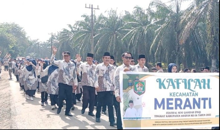 Asahan — Pemerintah Kecamatan Meranti beserta perangkat dan kepala Desa se-Kecamatan Meranti antusias dalam mengikuti kegiatan Pawai Ta’aruf Pembukaan festival seni Qasidah (FSQ)Tingkat Kabupaten Asahan tahun 2025 yang dilaksanakan di Desa Perkebunan Pulahan Kecamatan Air Batu, Kabupaten Asahan, Sumatera Utara, Selasa (31/7/2025).