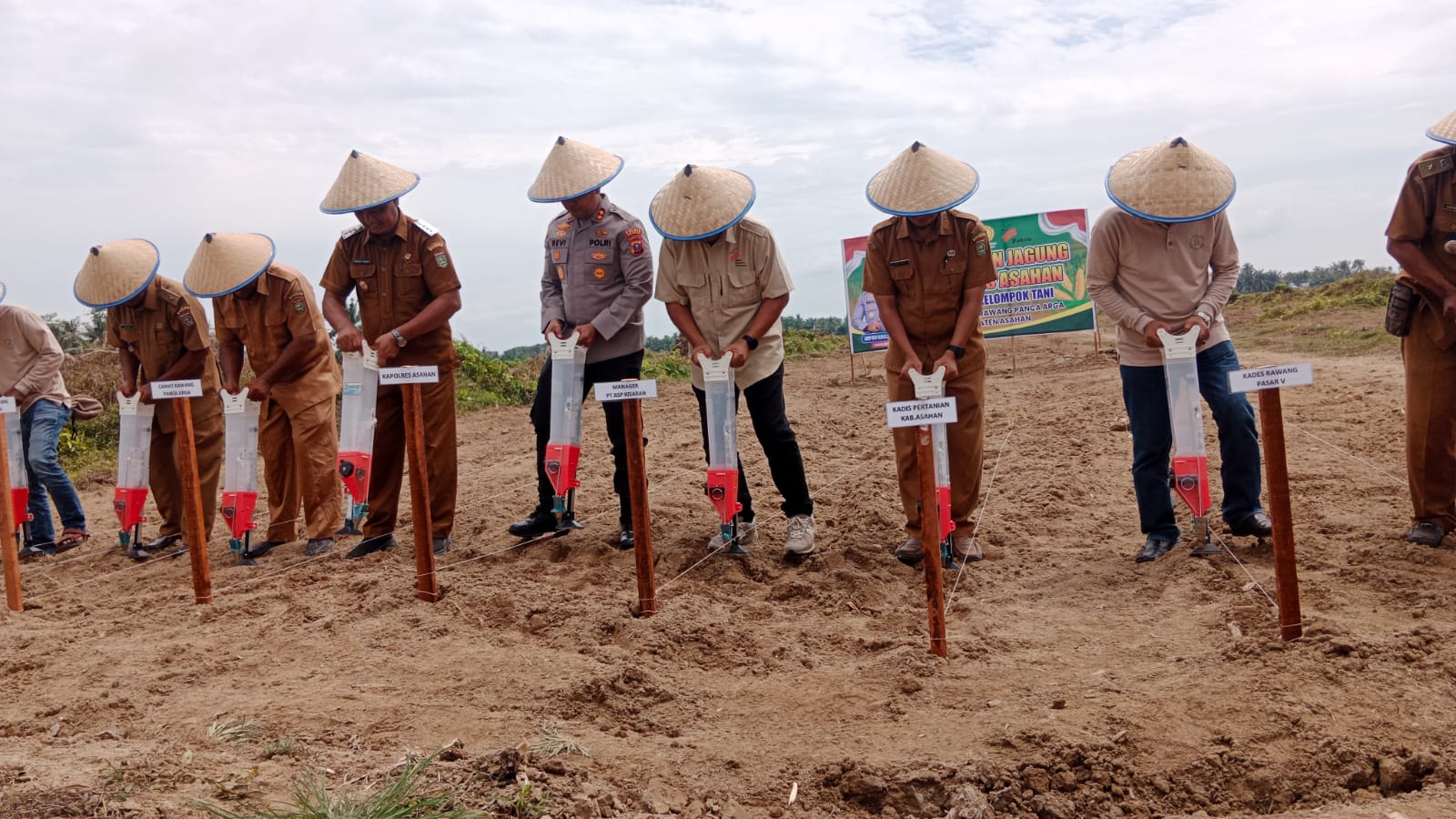 “Jadi hari ini kita bersama polres Asahan intansi pemerintah setempat seperti Camat, kepala Desa serta PPL pertanian melakukan penanaman jagung di Lahan PT BSP seluas 20 Hektar, ” jelas Riswanto.