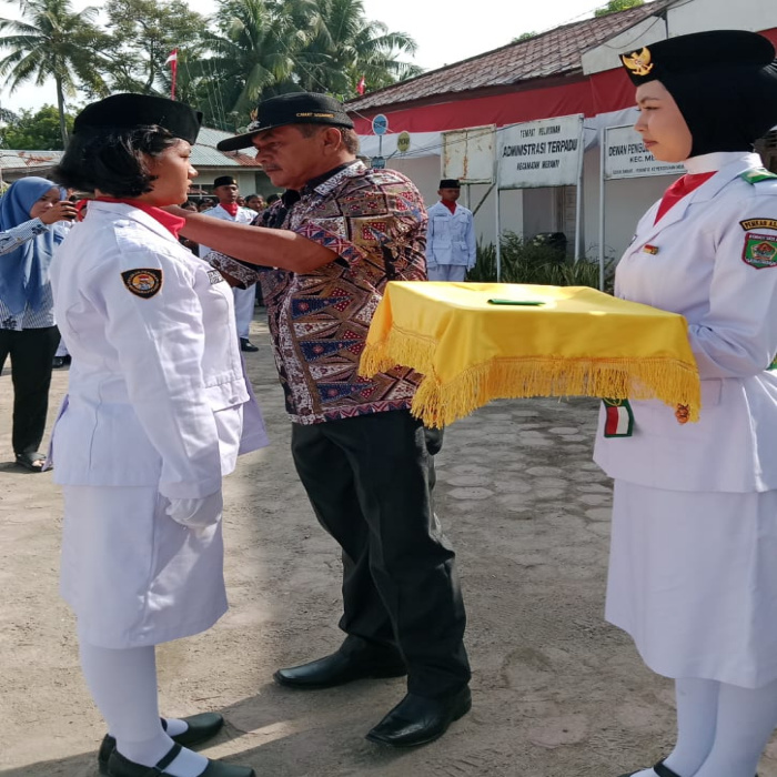 Asahan — Sebanyak 40 orang pasukan pengibar bendera (Paskibra) pada peringatan HUT ke 80 RI Tahun 2025 di kukuhkan Camat Meranti Sugeng Surya Saragih.