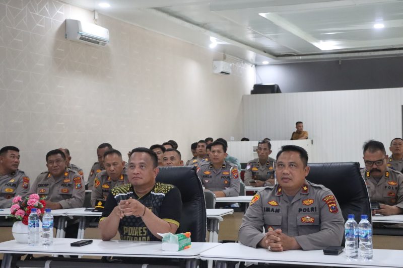 Kegiatan tersebut berlangsung di Aula Sarja Arya Racana Polres Batu Bara, dengan menggunakan sarana Video Tron Polres Batu Bara, diikuti Waka Polres KOMPOL Imam Alriyudin, S.H., M.H serta para Pejabat Utama (PJU) dan Polsek jajaran.