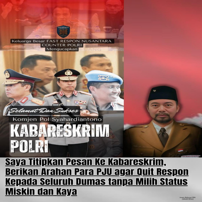 Menurutnya, meminimalisir agar Citra Polri lebih baik, melakukan Quit Respon terhadap Aduan Masyarakat (Dumas) tanpa pilih kasih ” Si Kaya dan Si Miskin”.