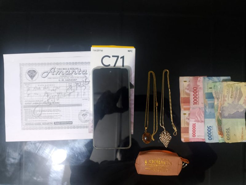Saat ditangkap, pelaku sempat tidak mengakui perbuatannya. Namun, dari pemeriksaan telepon genggamnya ditemukan foto-foto perhiasan yang diduga milik korban, serta uang tunai sebesar Rp 3.475.000.
