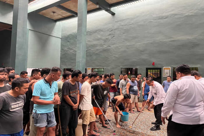 Kalapas memantau secara langsung kondisi kebersihan blok hunian, bahkan turut serta melakukan pembersihan bersama jajaran sebagai bentuk teladan kepada petugas dan warga binaan. “Kebersihan adalah hal mendasar yang harus terus dijaga, karena lingkungan yang bersih akan mendukung terciptanya suasana yang sehat dan kondusif,” tegas Soetopo Berutu.