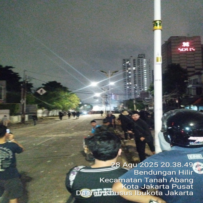 Jakarta — Aksi demonstrasi buruh yang berlangsung di kawasan Bendungan Hilir, Kecamatan Tanah Abang, Jakarta Pusat, pada Kamis malam berujung bentrokan antara massa dengan aparat kepolisian, Kamis 28/8/2025.