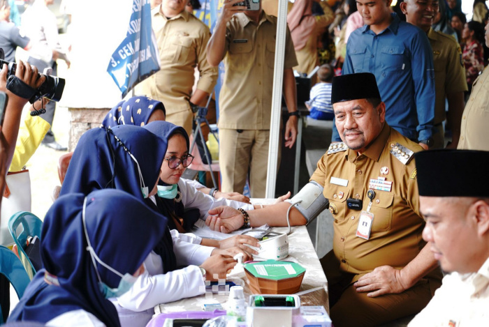 Bupati dan Wabup mengecek kesehatannya meliputi wawancara riwayat kesehatan pemeriksaan fisik termasuk tekanan darah, berat badan, cek kadar gula dan cek kolesterol.