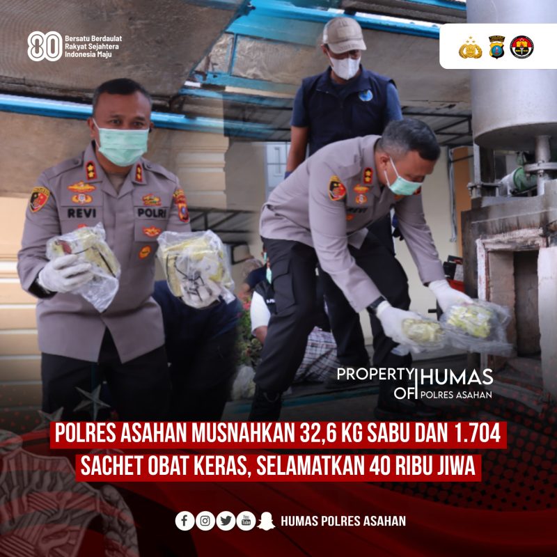 Polres Asahan Musnahkan 32,6 Kg Sabu dan 1.704 Sachet Obat Keras, Selamatkan 40 Ribu Jiwa