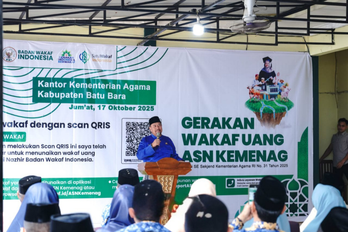 BATU BARA — Dalam upaya memperkuat peran umat dalam pemberdayaan ekonomi berbasis syariah, Bupati Batu Bara H. Baharuddin Siagian, menghadiri Launching Gerakan Wakaf Uang ASN Kementerian Agama Kabupaten Batu Bara yang digelar di Lapangan Kantor Kemenag Batu Bara, Jumat (17/10/2025).